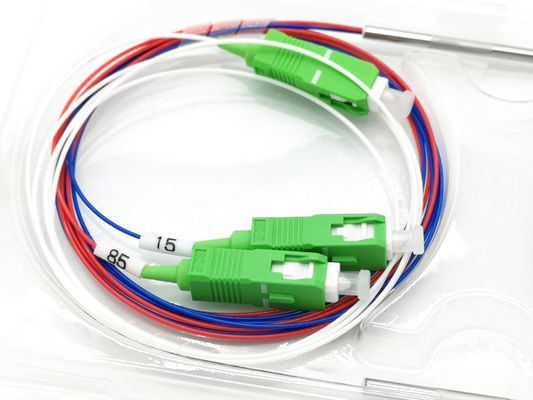 SC APC Fiber Optic 1*2 FBT Coupler 15%:85% Blauw-Rode Kleur voor WDM T1550 R1310/1490 FWDM