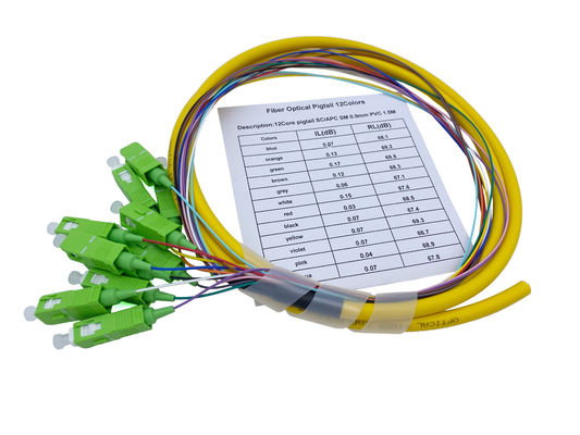 12 APC van kernensc van de Vezel Optisch Bundel Geel FTTH het Flardcomité van de Vlechteng652d pvc 900um 1.5Mts