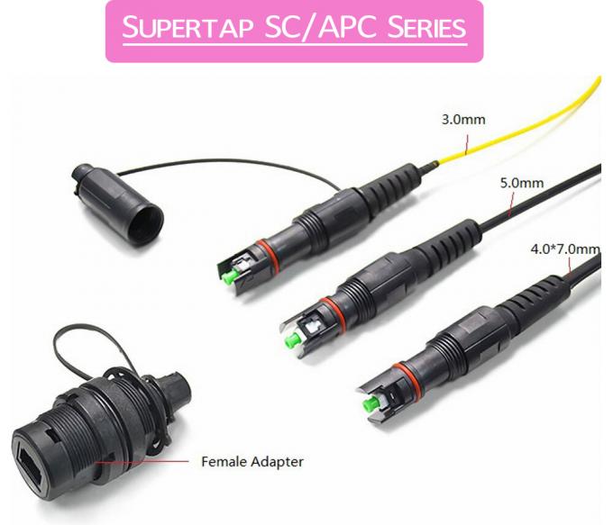 De SC/APC-connectoren worden gekoppeld aan een standaardadapter die een gemeenschappelijke interface biedt voor FTTx-toepassingen.De Supertap-connectoren leverden een idee voor een directe begraven, leidingen of luchtinstallaties.