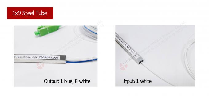 1x9 onevenwichtige splitter gebruiken dezelfde stalen buis 60 * 7 * 4mm als 1x8 splitter, input 1, output 9 = 4 * 2 + 1pcs vezel array.