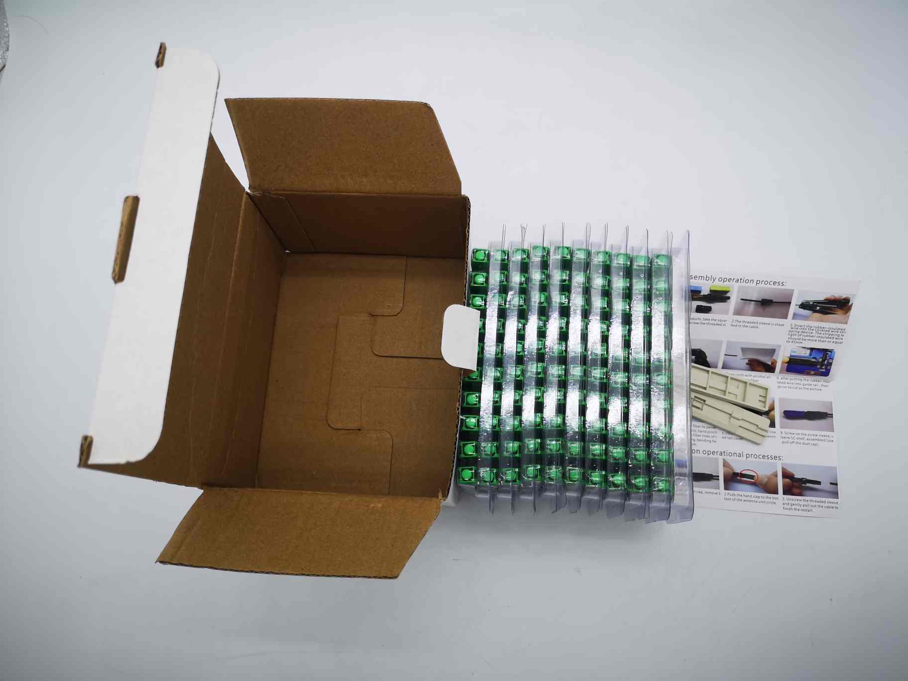 De hoofdvoederkabel kan van voren naar binnen en naar buiten gaan, er zijn 2 stuks slot voor dropkabel 2x3mm of 2x5mm waar tanden zijn om ze op hun plaats te houden en stevig te bevestigen.Er is één groot gat voor > 10 mm kabels die zonder snijden heen en weer gaan., en je kunt nylon stropdas gebruiken om de kabel op zijn plaats te bevestigen, er zijn gereserveerde gaten.