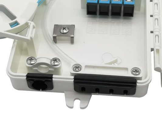 Een glasvezelverbindingsdoos wordt gewoonlijk gebruikt in de laatste stap van woongebouwen en villa's voor het bevestigen en splitsen met pigtails.Het kan gemakkelijk worden geïnstalleerd op de muur met de mogelijkheid om LC te gebruikenDe doos is voorzien van een rubberen afdichting om buiten gebruik mogelijk te maken, waardoor bescherming IP65 wordt geboden.4Bovendien is er een 1x4 stalen buis slot die kan worden gebruikt voor splitsing distributie.